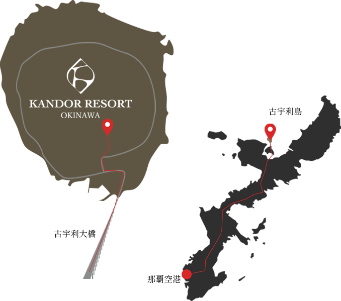 ▶︎ 古宇利島入口から約5分で到着 ▶︎ カンドアリゾートオキナワ着